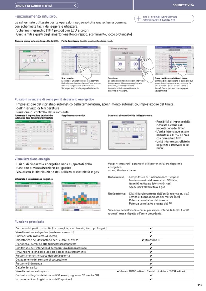 Funzione dei gesti con le dita (tocco rapido, scorrimento, tocco prolungato)