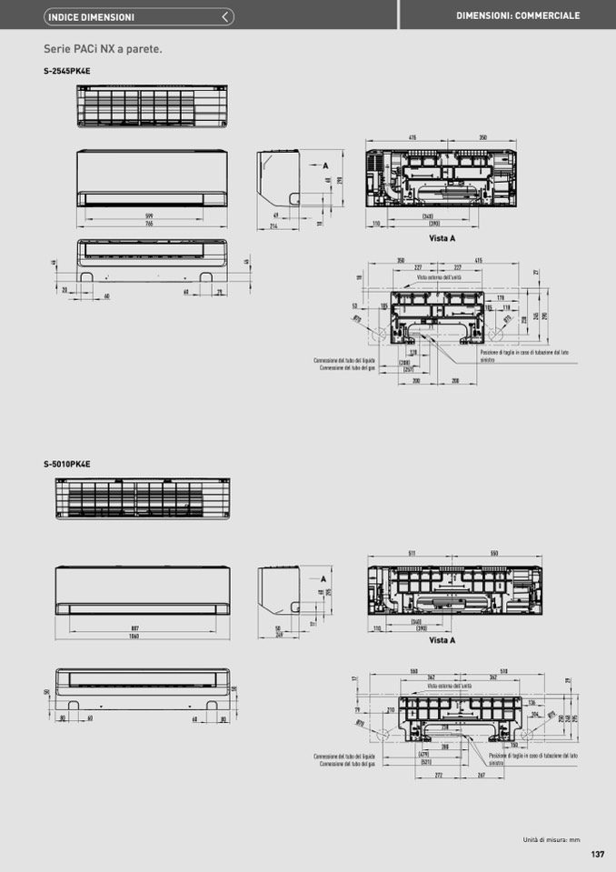 Posizione di taglio in caso di tubazione dal lato