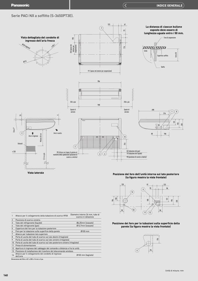 Posizione del foro dell'unit