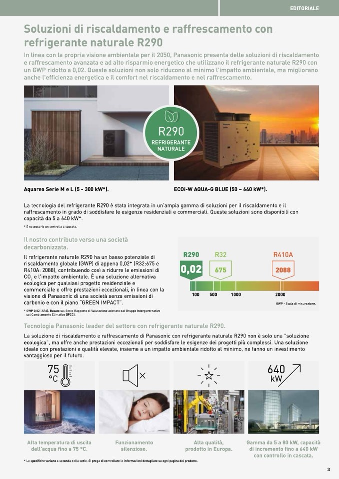 Tecnologia Panasonic leader del settore con refrigerante naturale R290.