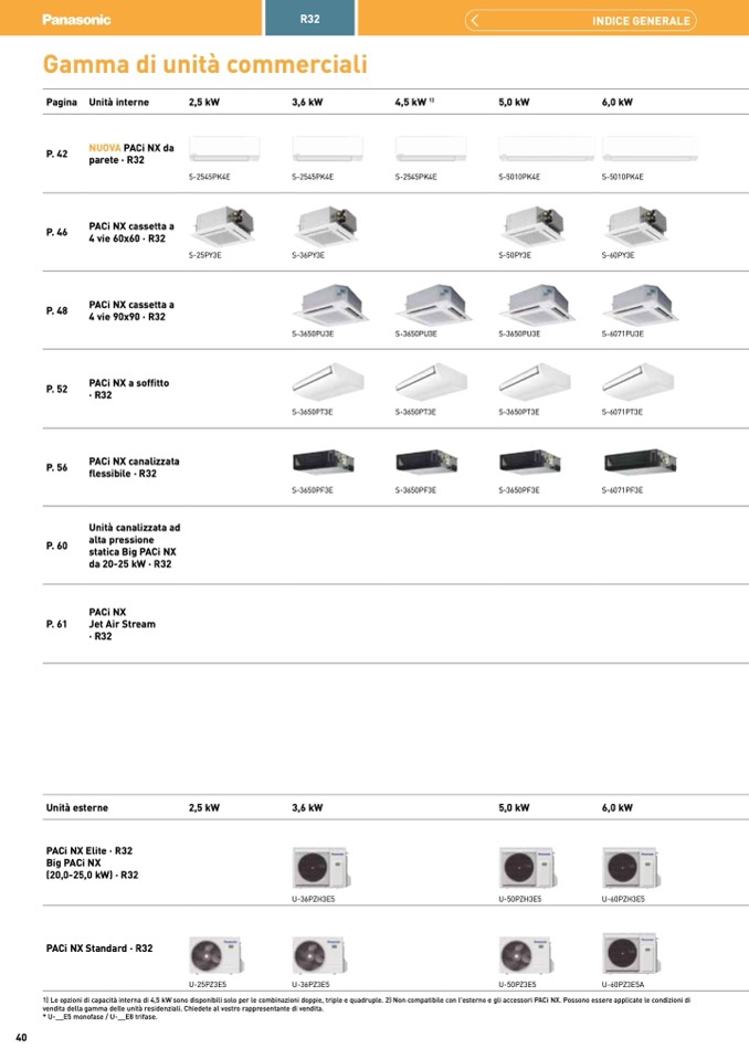 à interna di 4,5 kW sono disponibili solo per le combinazioni doppie, triple e quadruple. 2) Non compatibile con l'esterno e gli accessori PACi NX. Possono essere applicate le condizioni di