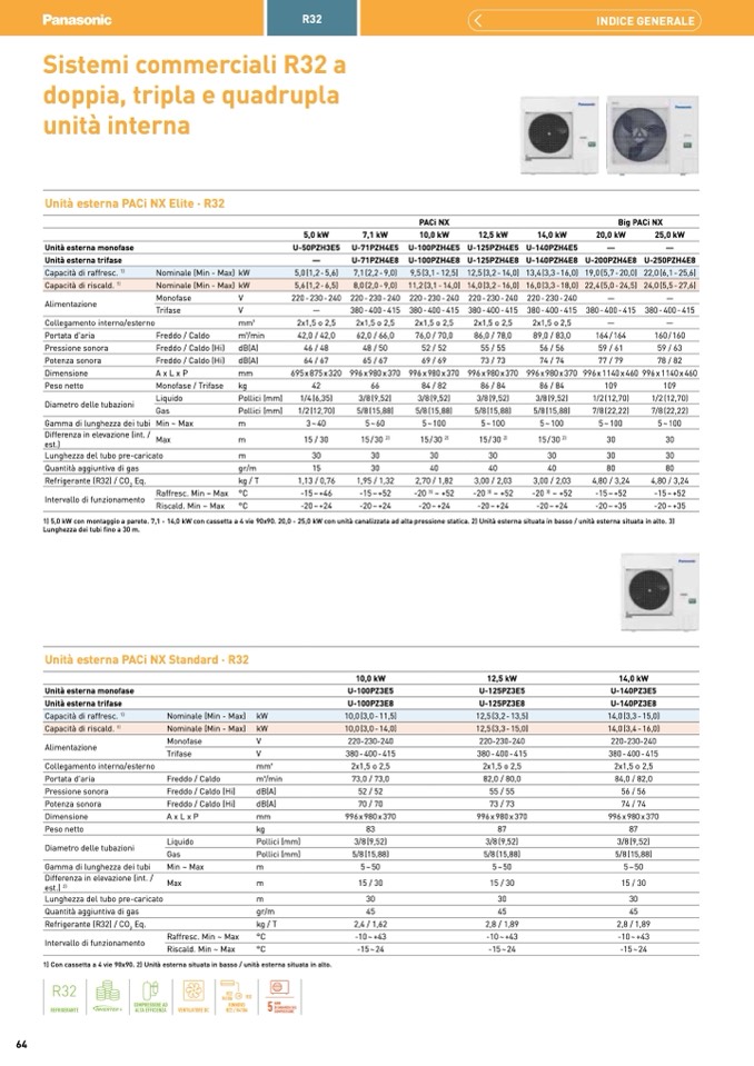 1) 5,0 kW con montaggio a parete. 7,1 - 14,0 kW con cassetta a 4 vie 90x90. 20,0 - 25,0 kW con unit