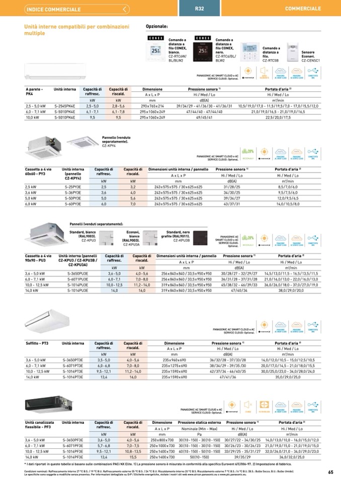 Le specifiche sono soggette a modifiche senza preavviso. Per informazioni dettagliate su ErP / Etichette energetiche, visitate i nostri siti web www.aircon.panasonic.eu o www.ptc.panasonic.eu.