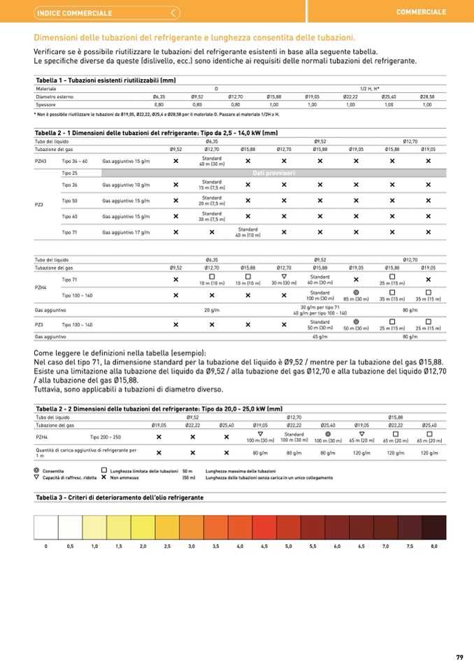 * Non è possibile riutilizzare le tubazioni da Ø19,05, Ø22,22, Ø25,4 e Ø28,58 per il materiale O. Passare al materiale 1/2H o H.