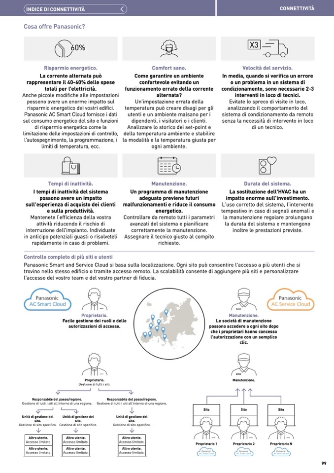 Panasonic Smart and Service Cloud si basa sulla localizzazione. Ogni sito può consentire l'accesso a più utenti che si