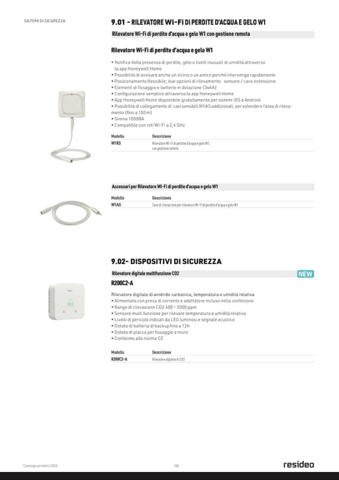 • Notifica della presenza di perdite, gelo o livelli inusuali di umidità attraverso