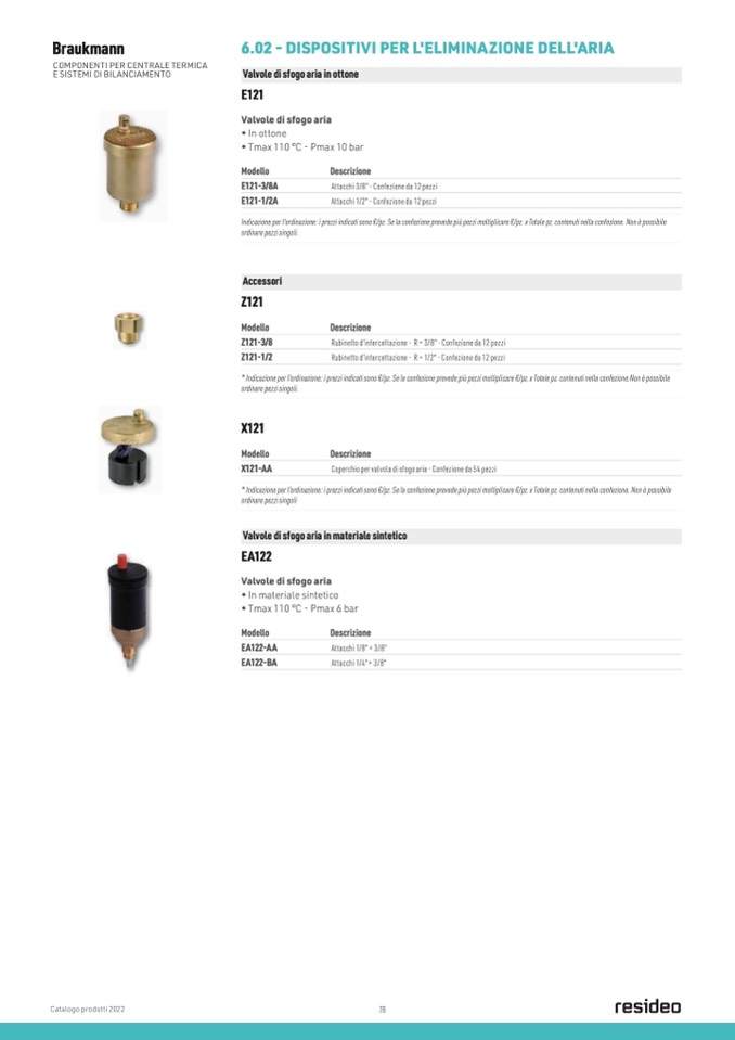 Indicazione per l'ordinazione: i prezzi indicati sono €/pz. Se la confezione prevede più pezzi moltiplicare €/pz. x Totale pz. contenuti nella confezione. Non è possibile