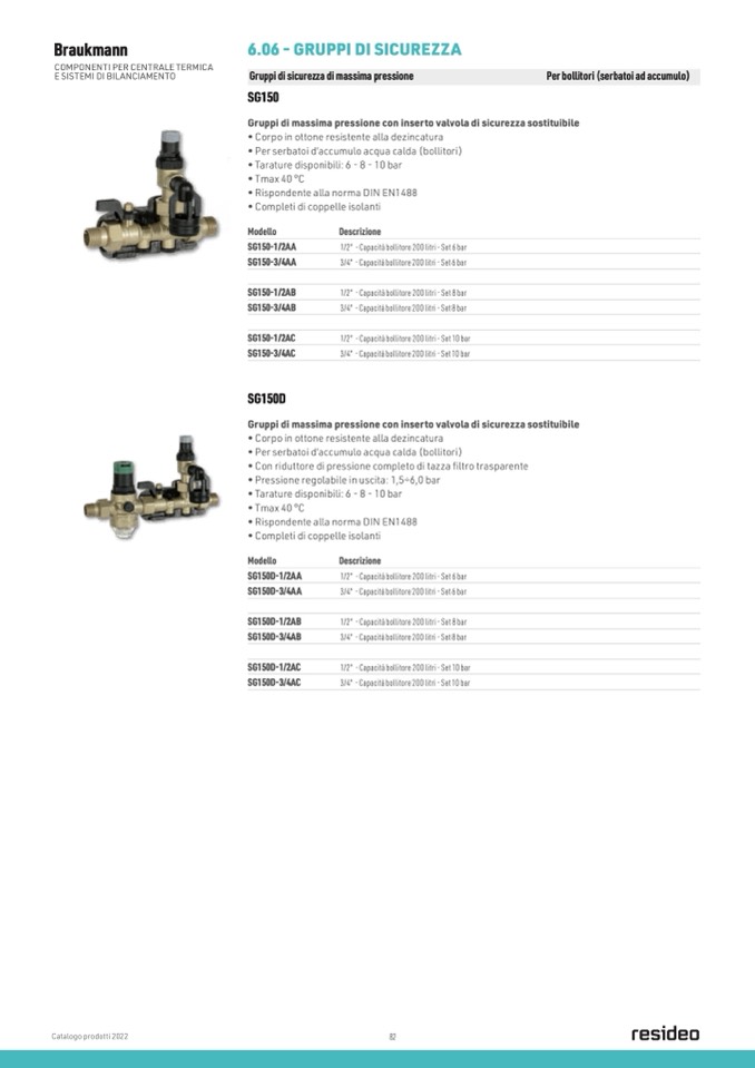 • Tarature disponibili: 6 - 8 - 10 bar