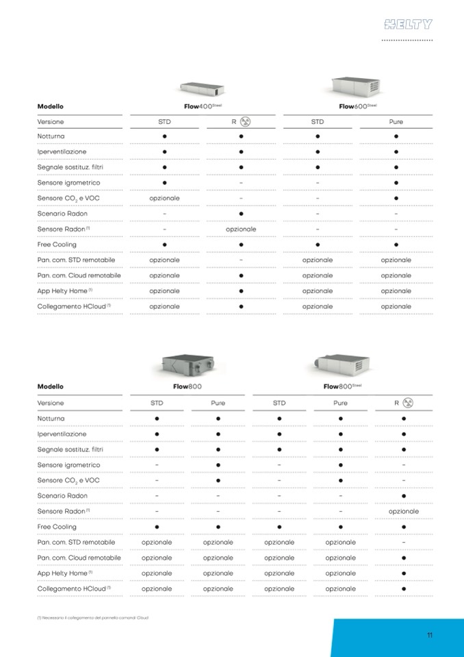 (1) Necessario il collegamento del pannello comandi Cloud