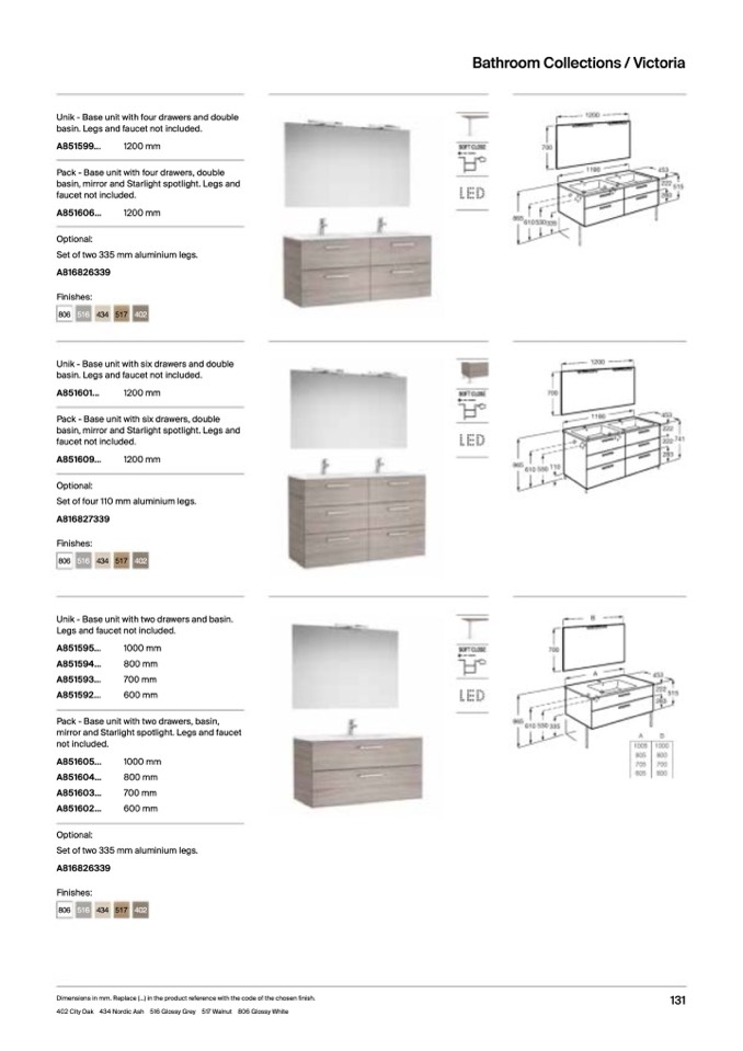 402 City Oak 434 Nordic Ash 516 Glossy Grey 517 Walnut 806 Glossy White