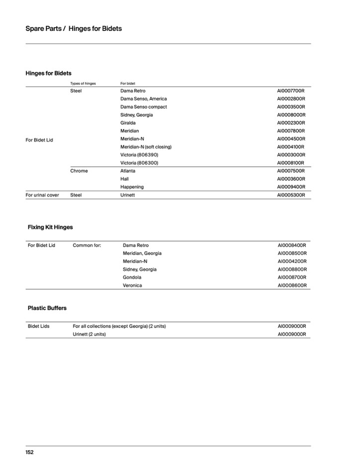Spare Parts / Hinges for Bidets