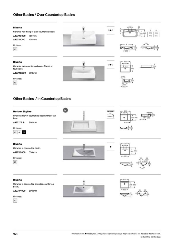 Pre-punched taphole. Replace (..) in the product reference with the code of the chosen finish.