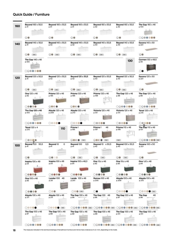 The measures indicated in the technical drawings of the bathroom furniture and mirrors have a tolerance of +2;-1 mm, depending on the model.