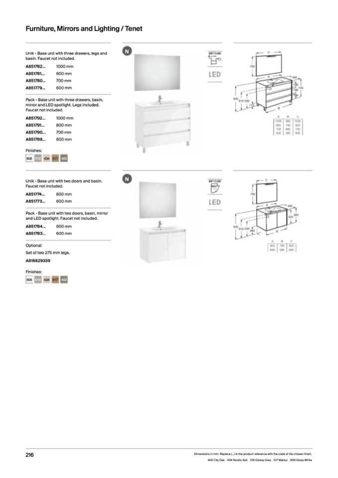 402 City Oak 434 Nordic Ash 516 Glossy Grey 517 Walnut 806 Gloss White