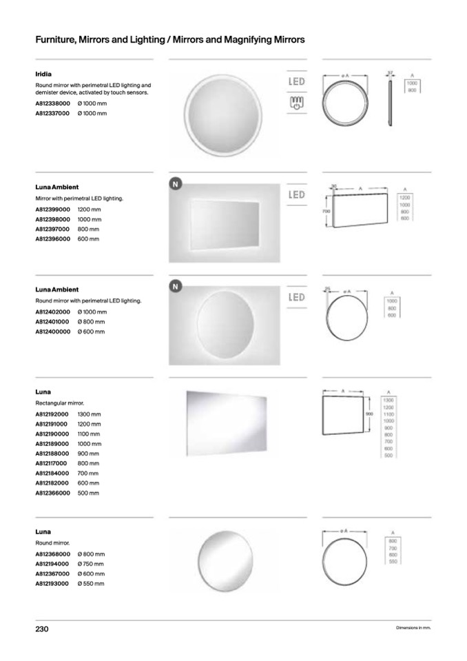 Round mirror with perimetral LED lighting and