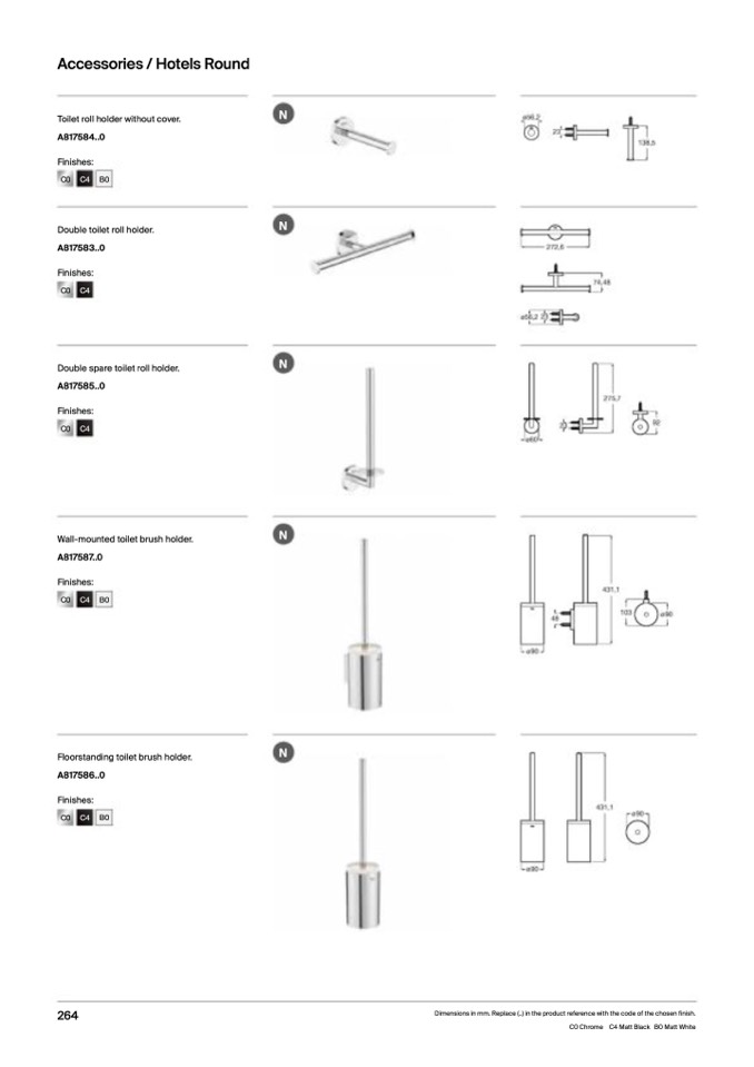 Dimensions in mm. Replace (..) in the product reference with the code of the chosen finish.