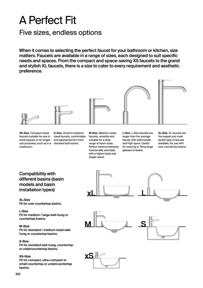 needs and spaces. From the compact and space-saving XS faucets to the grand