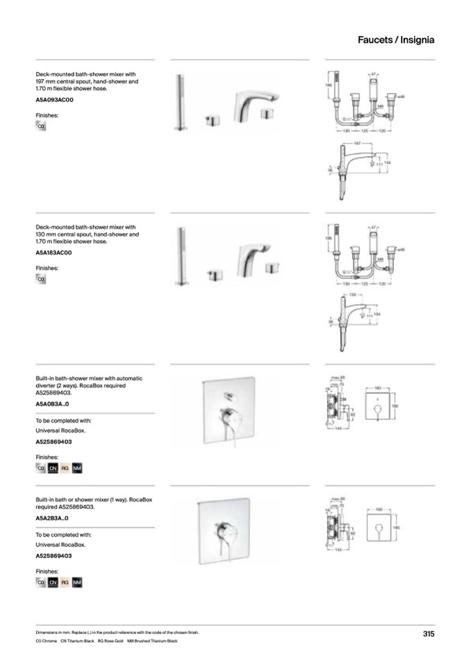 Dimensions in mm. Replace (..) in the product reference with the code of the chosen finish.