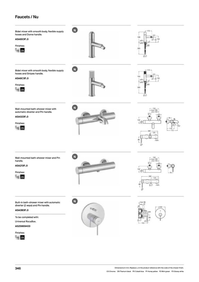 Dimensions in mm. Replace (..) in the product reference with the code of the chosen finish.