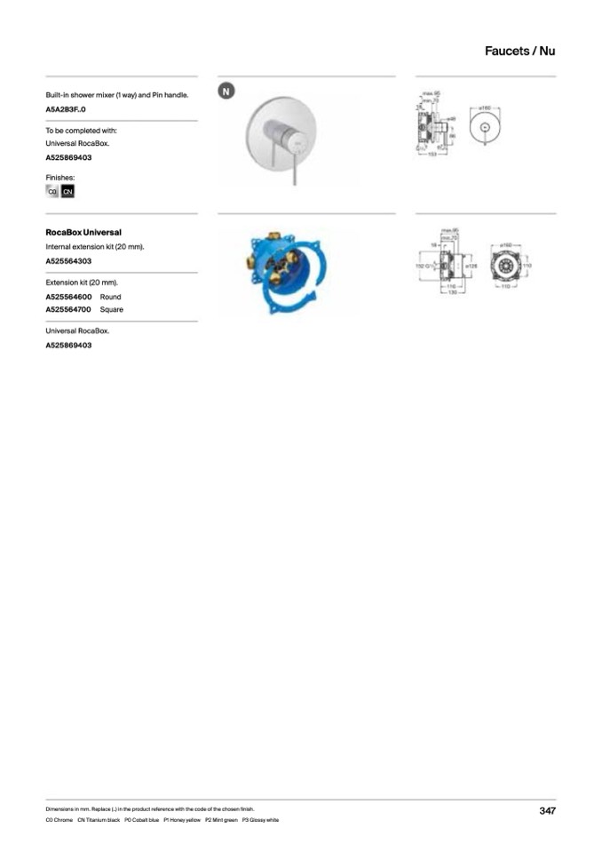 Dimensions in mm. Replace (..) in the product reference with the code of the chosen finish.