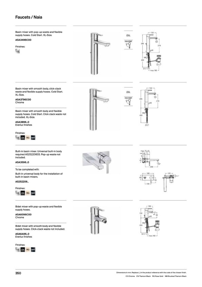 Dimensions in mm. Replace (..) in the product reference with the code of the chosen finish.