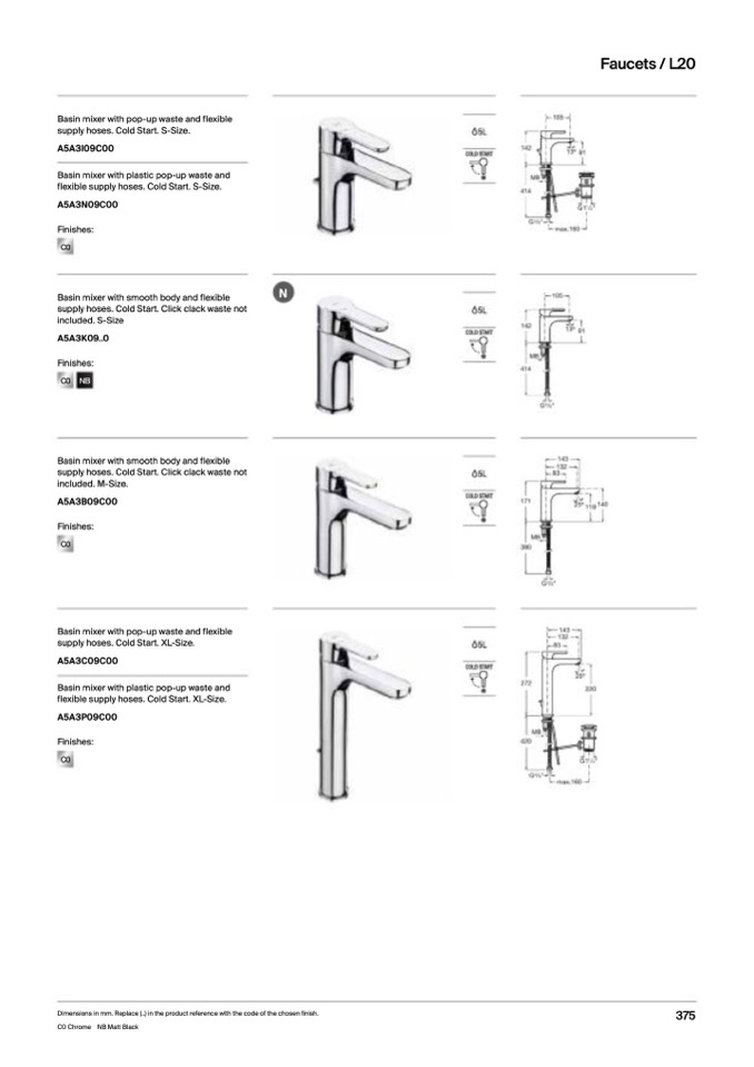 Dimensions in mm. Replace (..) in the product reference with the code of the chosen finish.