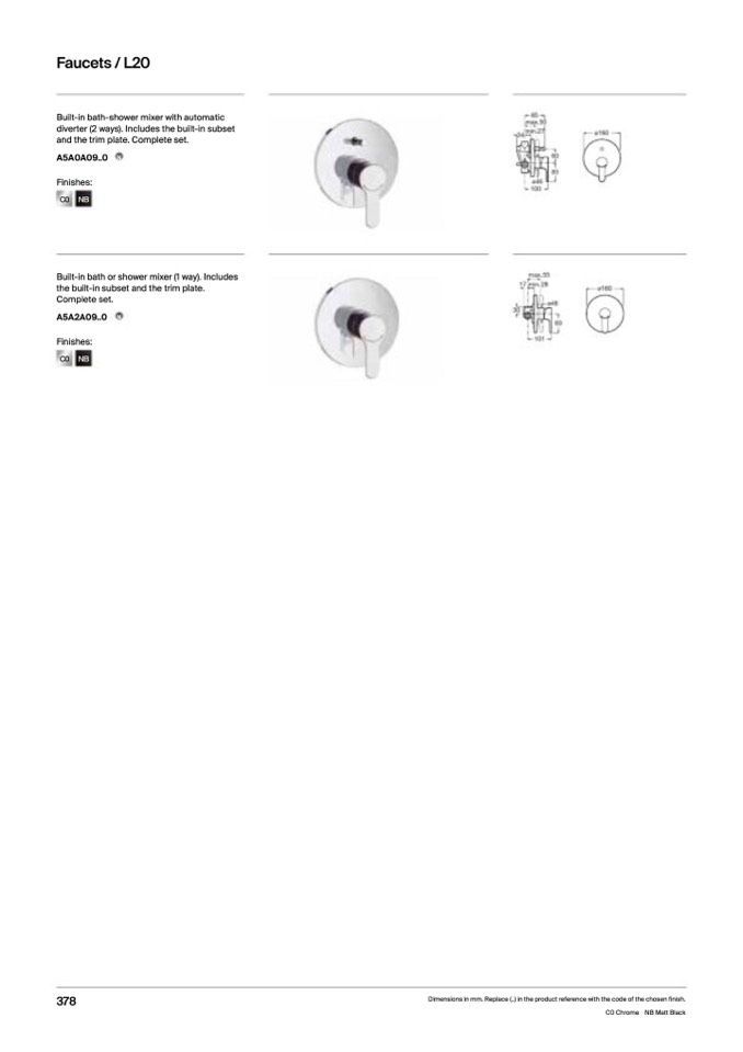 Dimensions in mm. Replace (..) in the product reference with the code of the chosen finish.