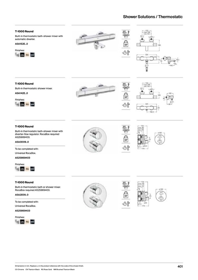 Dimensions in mm. Replace (..) in the product reference with the code of the chosen finish.