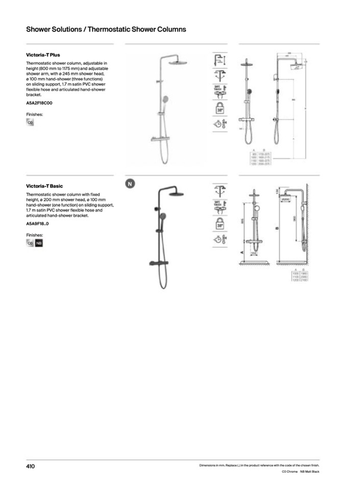 Dimensions in mm. Replace (..) in the product reference with the code of the chosen finish.