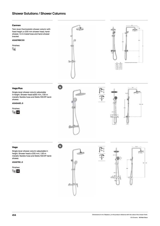 in height. Shower-head ø250 mm, 1.50 m
