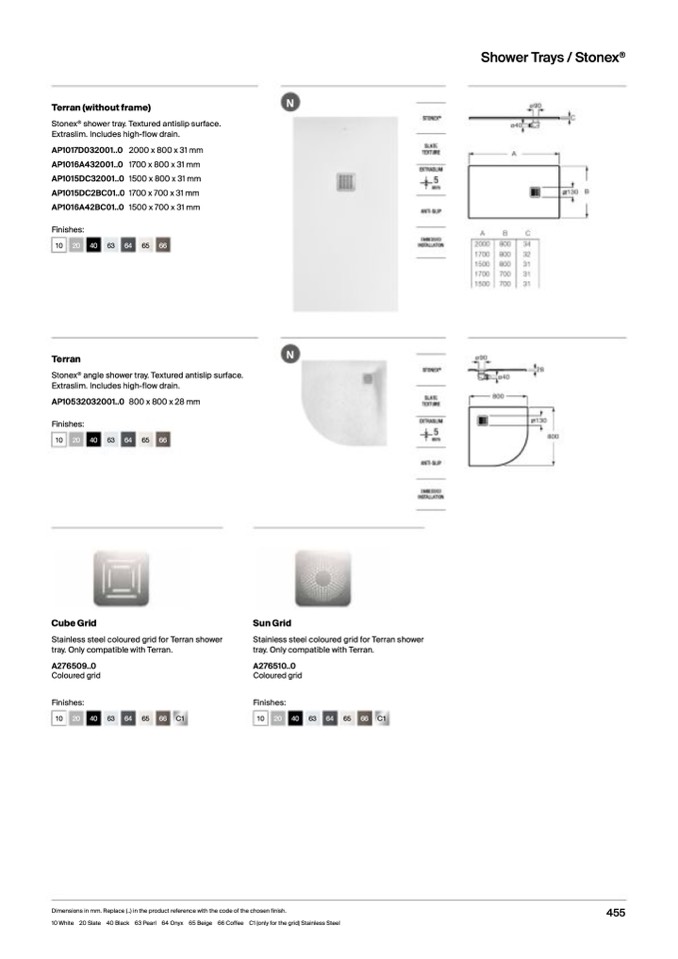 10 White 20 Slate 40 Black 63 Pearl 64 Onyx 65 Beige 66 Coffee C1 (only for the grid) Stainless Steel