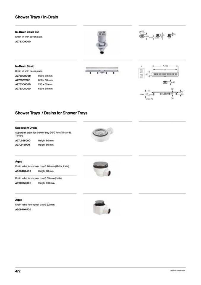 Drain valve for shower tray Ø 90 mm (Malta, Italia).