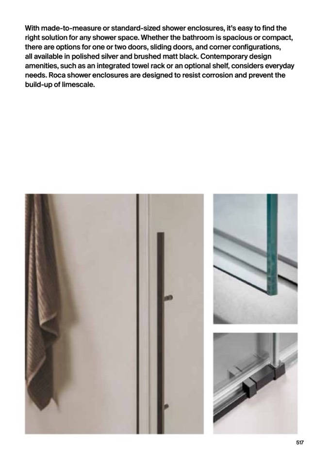 needs. Roca shower enclosures are designed to resist corrosion and prevent the