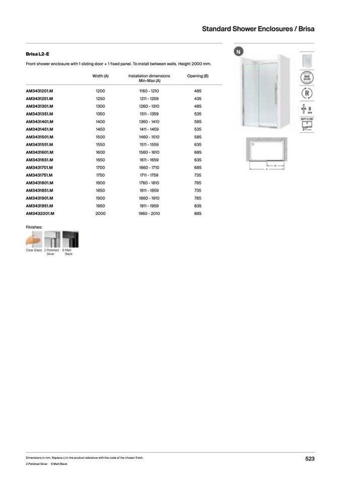 Dimensions in mm. Replace (.) in the product reference with the code of the chosen finish.