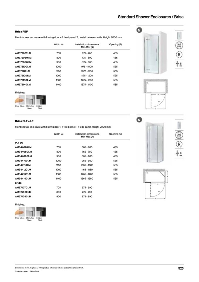 Dimensions in mm. Replace (.) in the product reference with the code of the chosen finish.