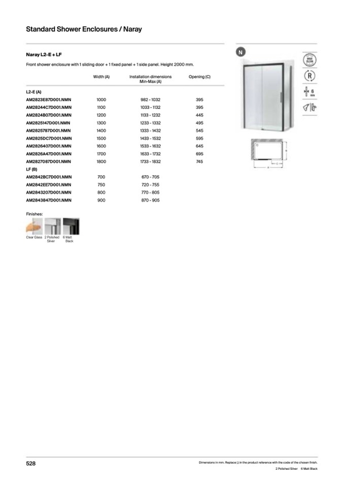Dimensions in mm. Replace (.) in the product reference with the code of the chosen finish.