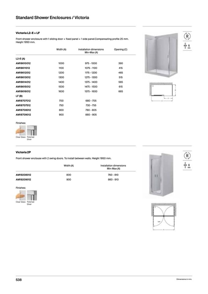 Front shower enclosure with 1 sliding door + fixed panel + 1 side panel.Compensating profile 25 mm.