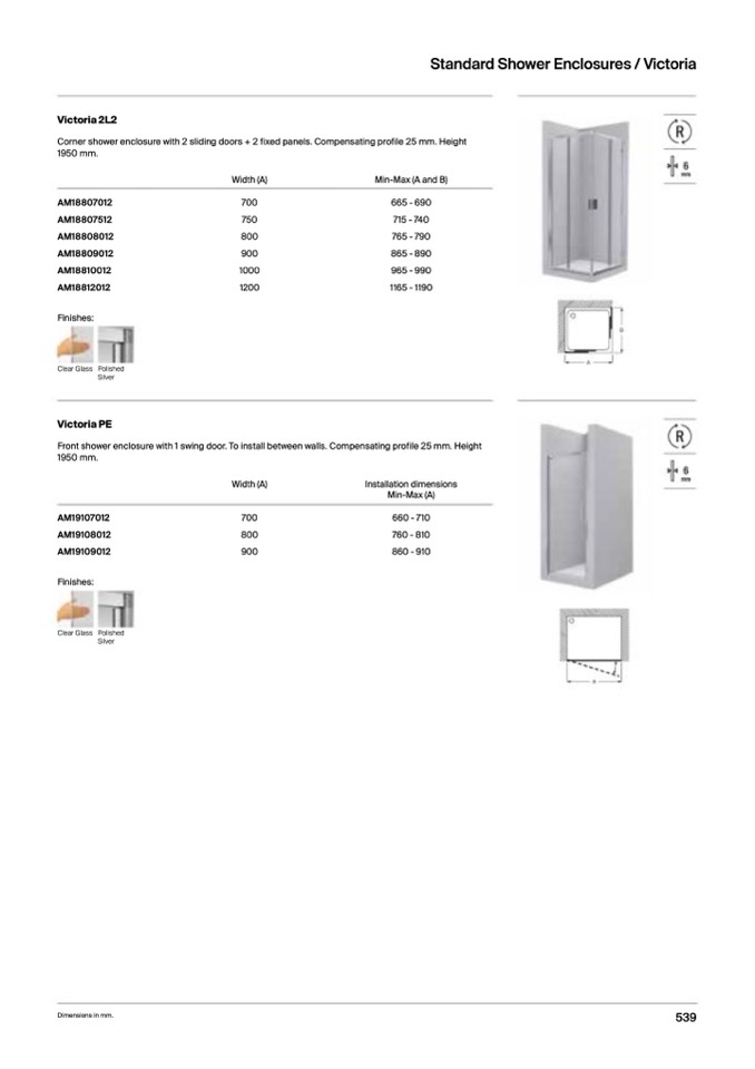 Standard Shower Enclosures / Victoria