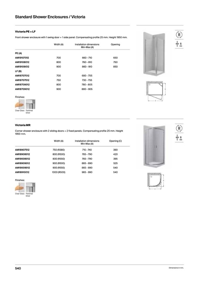 Front shower enclosure with 1 swing door + 1 side panel. Compensating profile 25 mm. Height 1950 mm.