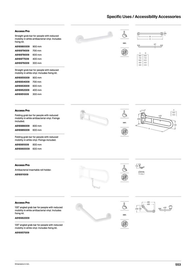 mobility in white vinyl. Fixings included.
