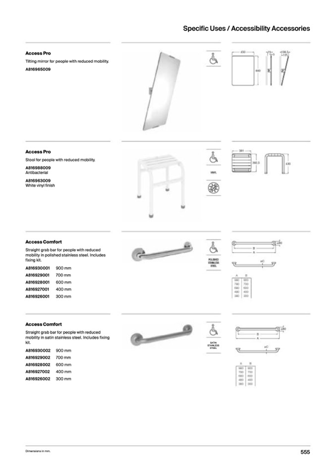 mobility in satin stainless steel. Includes fixing