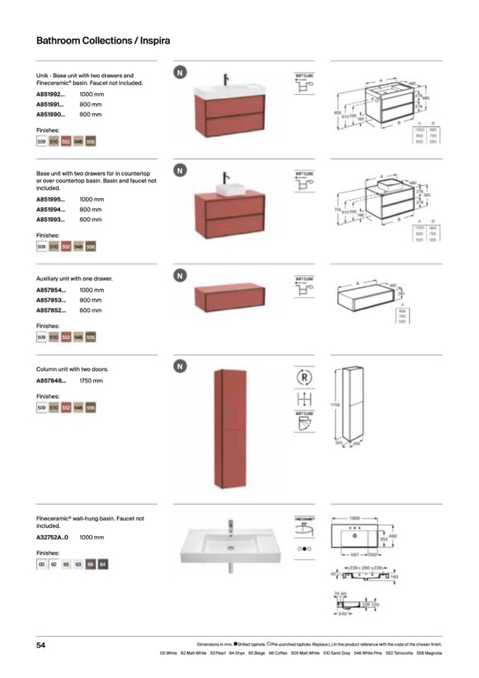 66 Coffee 509 Matt White 510 Sand Grey 546 White Pine 552 Terracotta 556 Magnolia