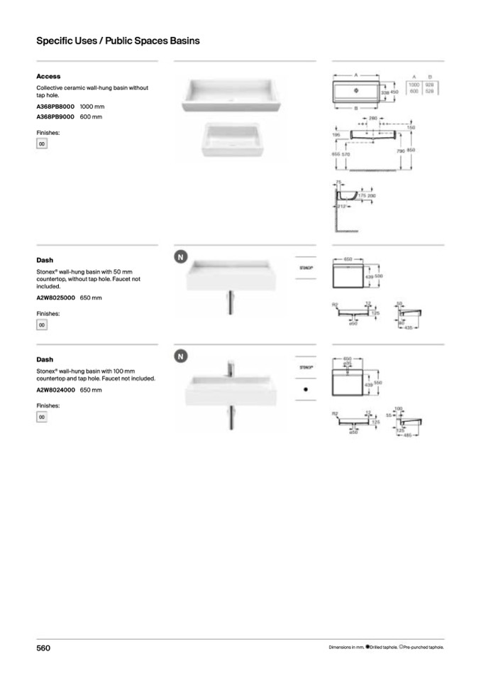 wall-hung basin with 100 mm