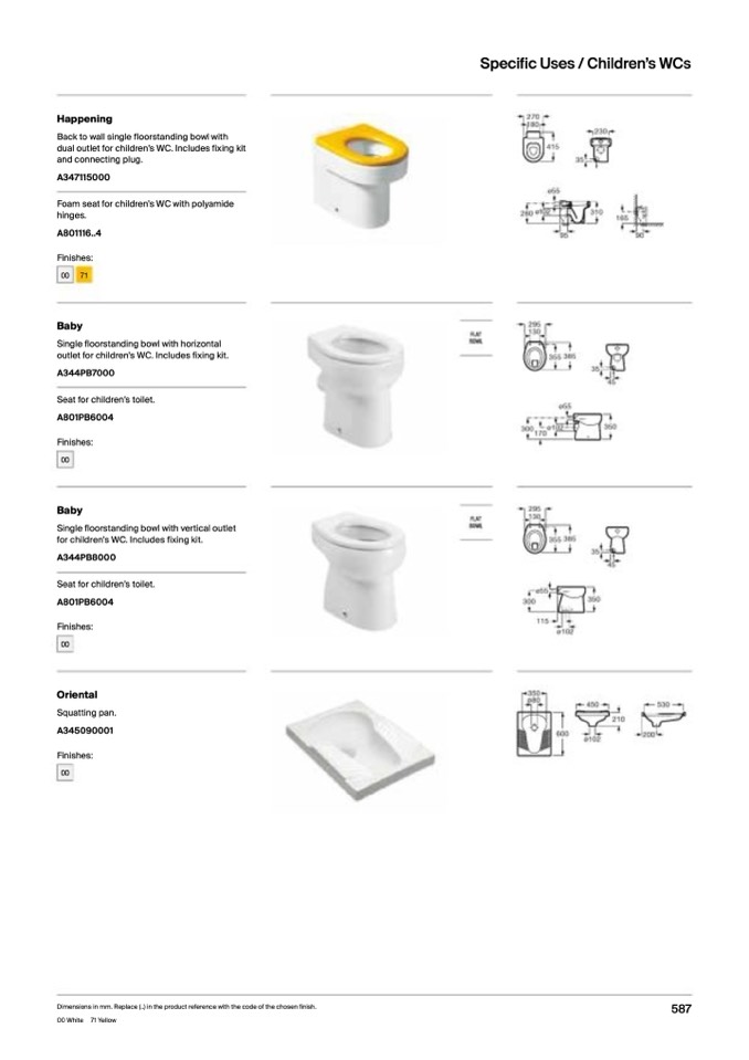 Dimensions in mm. Replace (..) in the product reference with the code of the chosen finish.