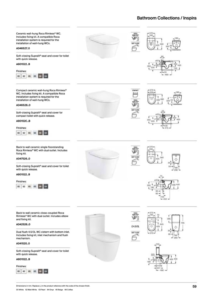 00 White 62 Matt White 63 Pearl 64 Onyx 65 Beige 66 Coffee