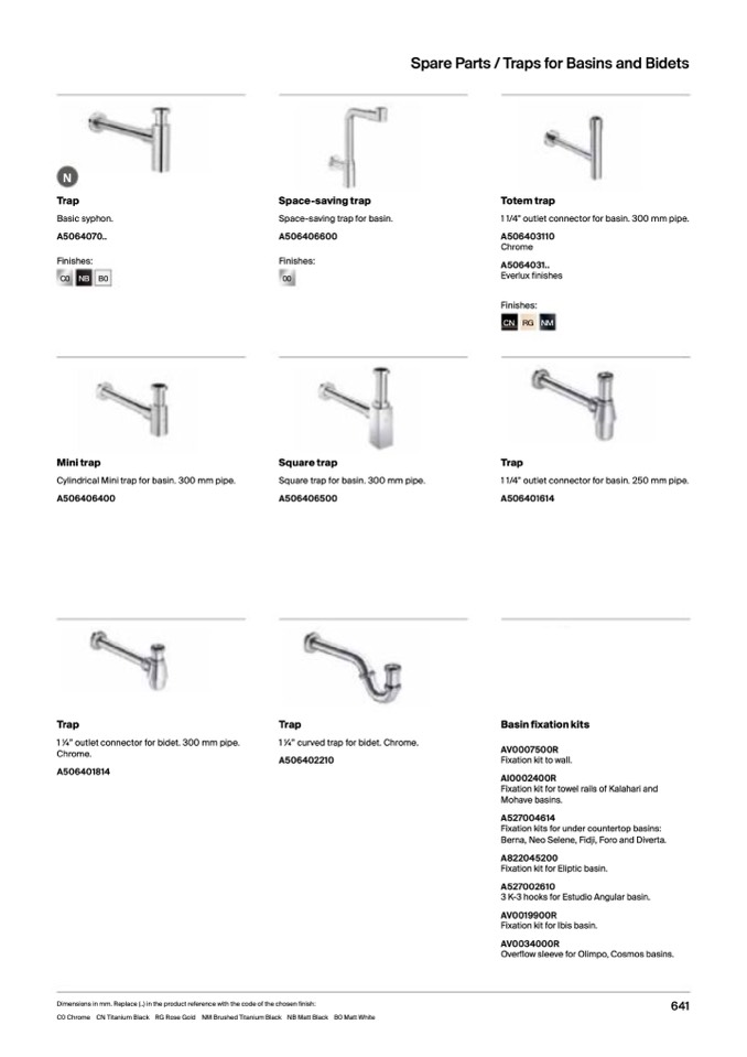 Spare Parts / Traps for Basins and Bidets