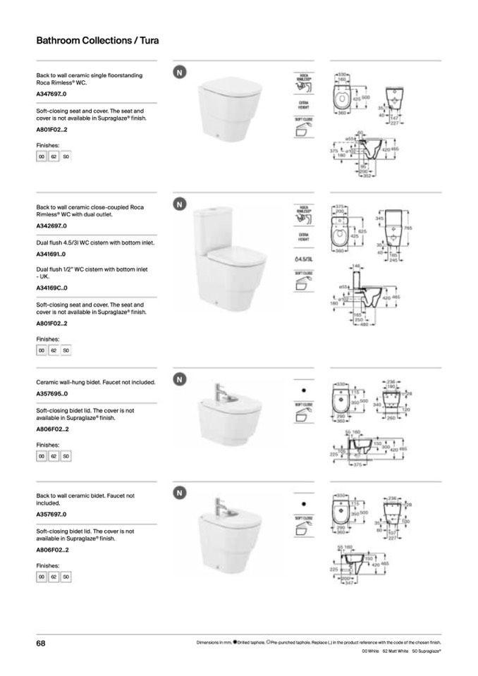 Pre-punched taphole. Replace (..) in the product reference with the code of the chosen finish.