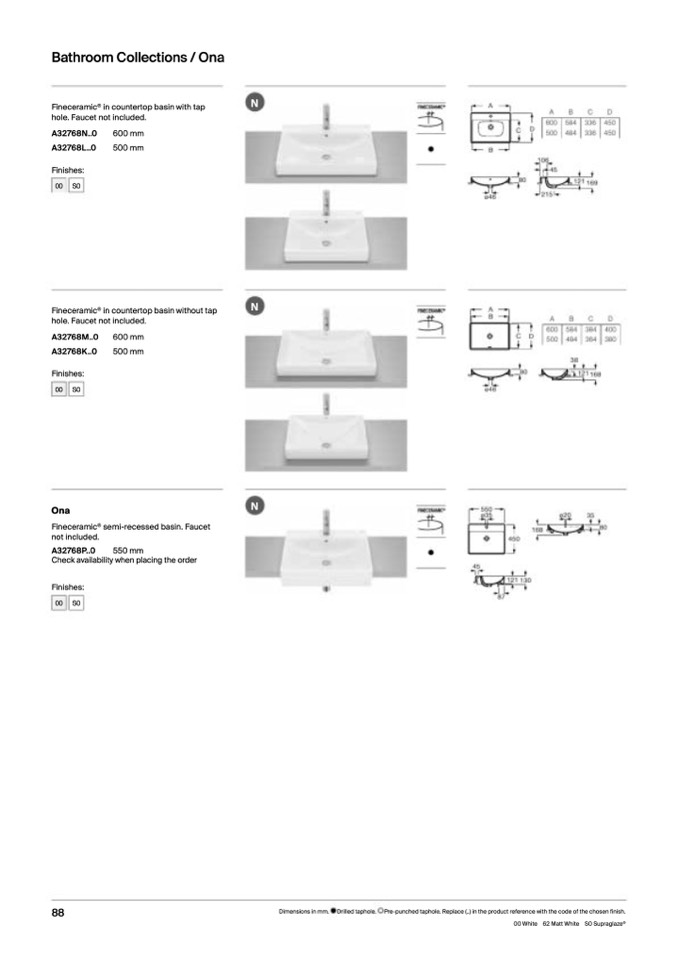 Pre-punched taphole. Replace (..) in the product reference with the code of the chosen finish.