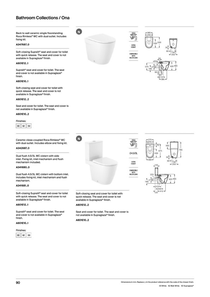 Dimensions in mm. Replace (..) in the product reference with the code of the chosen finish.
