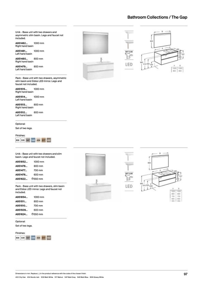 402 City Oak 434 Nordic Ash 509 Matt White 517 Walnut 547 Matt Grey 548 Matt Blue 806 Glossy White